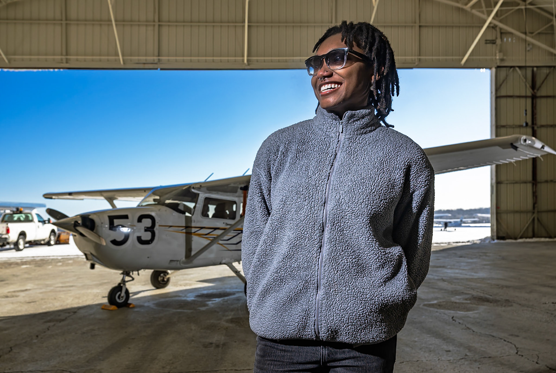 NASA Glenn Pilot Kurt Blankenship calls it a day after a research flight over Cleveland.